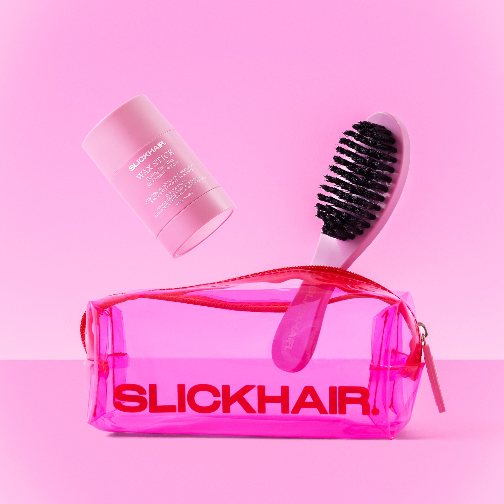 The perfect gift for lovers of polished, flyaway-free hair. This limited edition set includes a mini Smoothing Brush and the extra-strong hold Wax Stick, plus an exclusive limited edition makeup bag, to always keep your hair tools close, and looking cute.