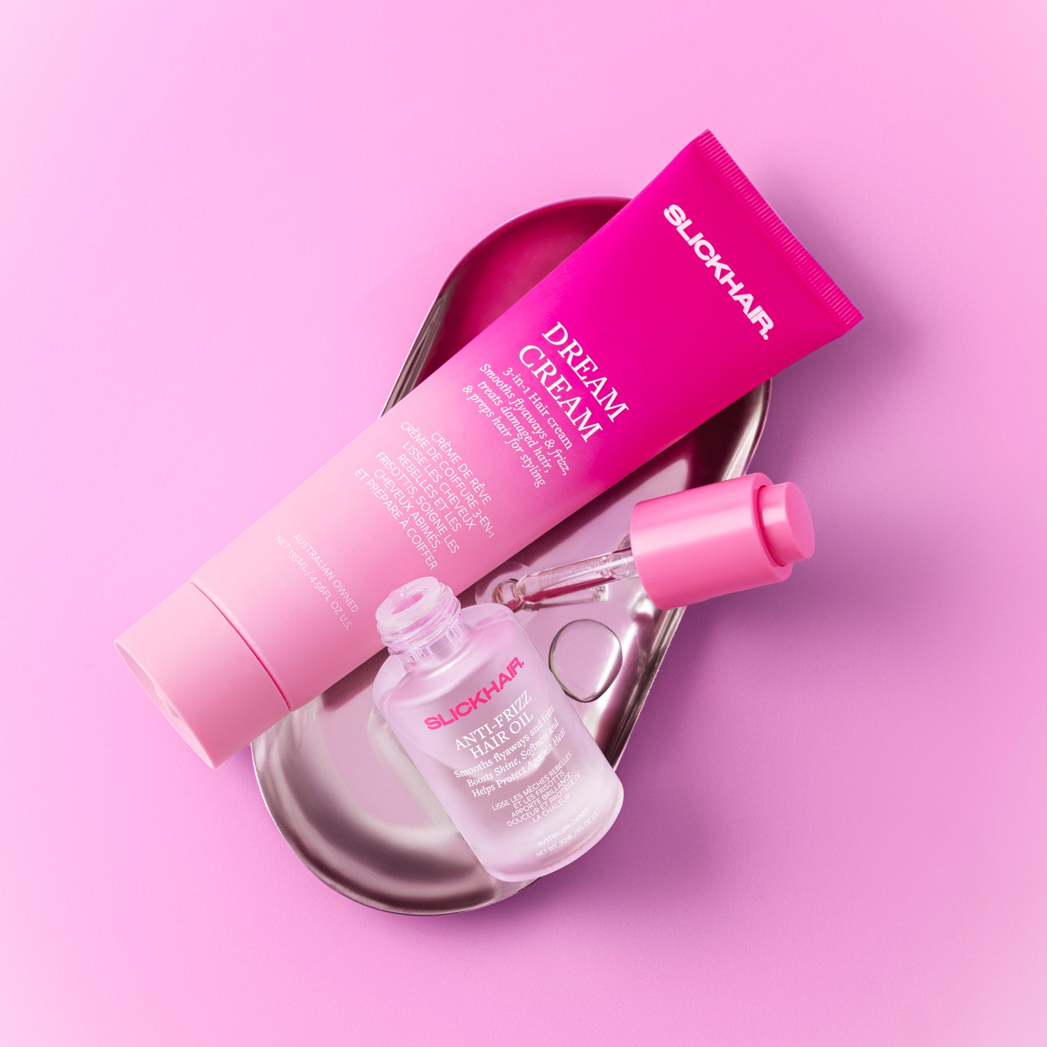 Naturally, we had to make it official. Meet the Smooth and Shine Bundle. The Dream Cream brings hydration and styling power. The Anti-Frizz Hair Oil delivers shine and instant frizz control. Mix them together and you get an incredibly smooth, slick, glossy finish that looks expensive, but feels effortless.