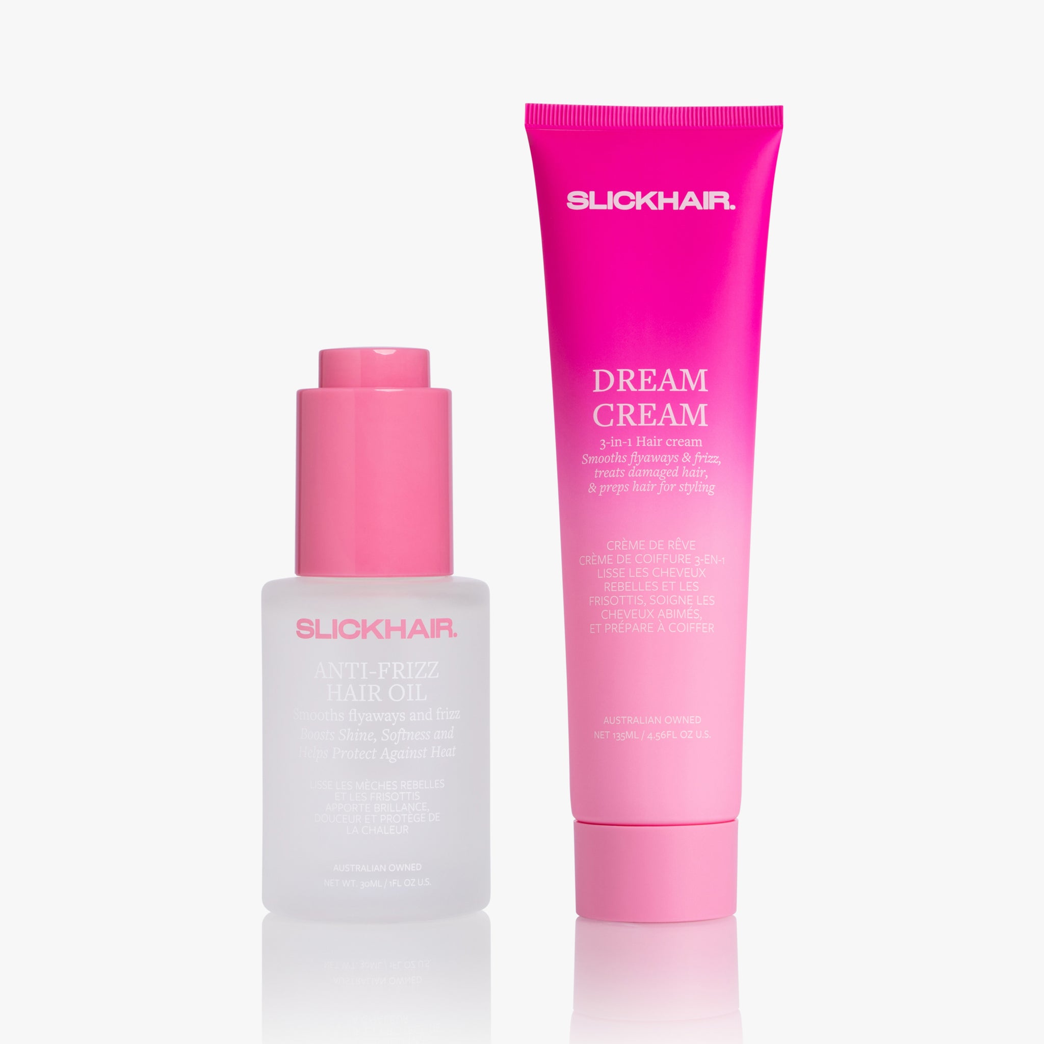 Naturally, we had to make it official. Meet the Smooth and Shine Bundle. The Dream Cream brings hydration and styling power. The Anti-Frizz Hair Oil delivers shine and instant frizz control. Mix them together and you get an incredibly smooth, slick, glossy finish that looks expensive, but feels effortless.