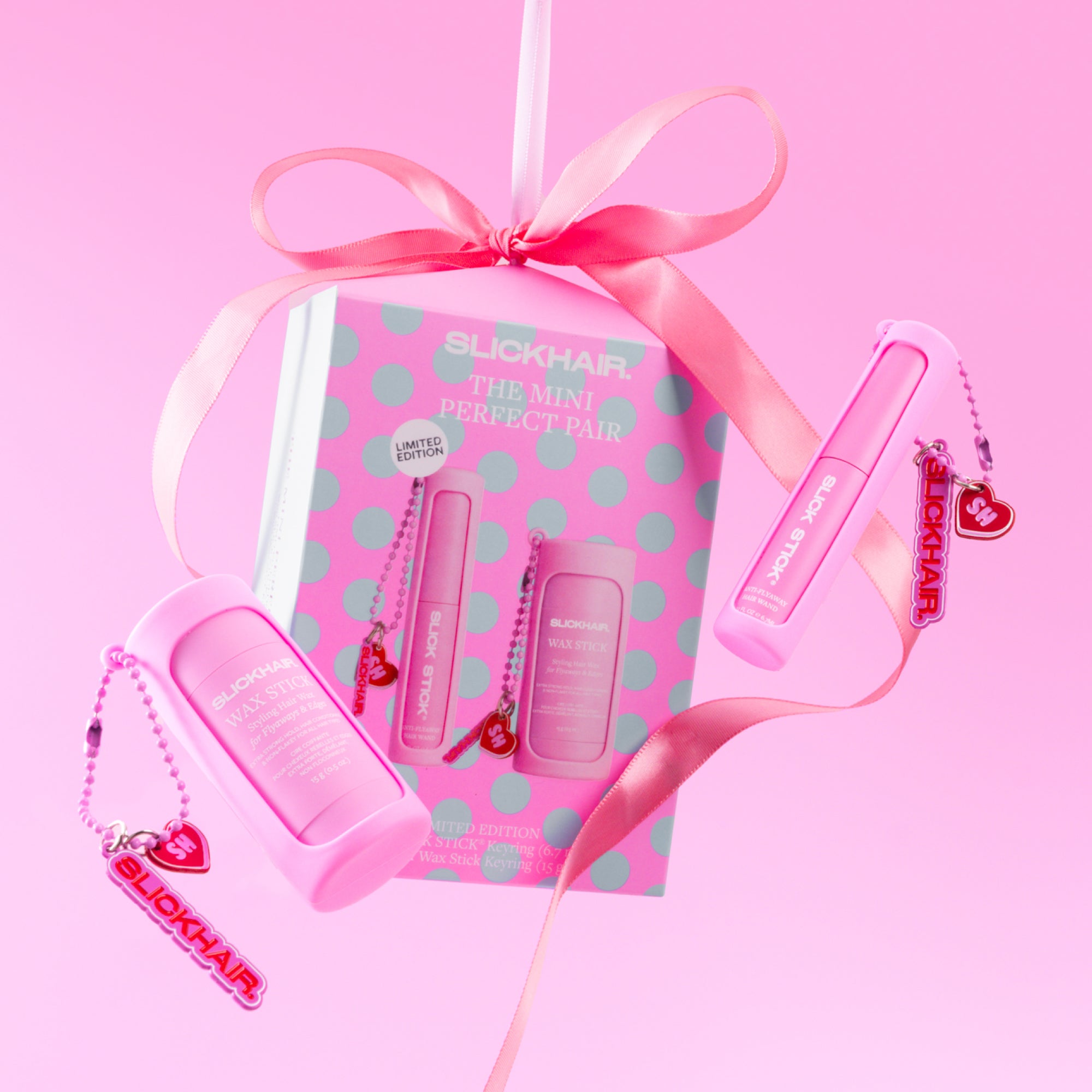 The Mini Perfect Pair is your go-to festive hair fix - in the cutest form ever. This limited-edition duo includes a Mini SLICK STICK® Keyring and Mini Wax Stick Keyring, both perfectly portable and ready to tackle flyaways anytime, anywhere. Housed in a bauble-style ornament, it’s the ultimate stocking stuffer or Secret Santa surprise. Clip them to your keys, bag, or beauty pouch - sleek hair is always within reach.